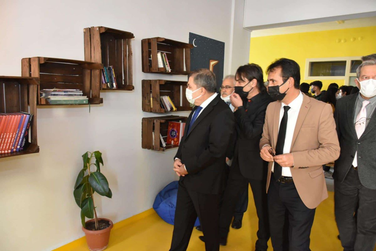 Geri dönüşüm kültürünü öğrencilere kazandırmak amacıyla oluşturulan kütüphaneyi gezen Vali Mehmet Alpaslan Işık ve İl Millî Eğitim Müdürü Mehmet Çalışkan, kütüphanenin yapım aşamasına ilişkin Okul Müdürü Akif Veli Külcü'den bilgiler aldı.