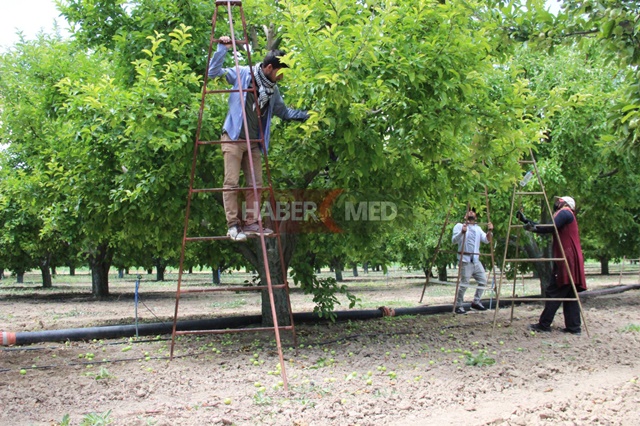 Elma üreticisi Mustafa Kaya ise kaliteli elma üretebilmek için ağaçlarda her yıl olduğu gibi bu yıl da seyreltme işlemi yaptıklarını söyledi.
