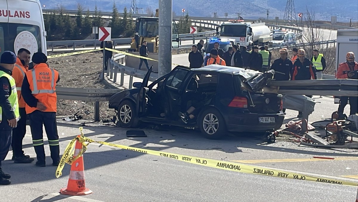 Kaza, Karaman-Konya karayolunun 31. kilometresi Kazaımkarabekir ilçesi yakınlarında meydana geldi. Edinilen bilgiye göre, Ali Günay (43), yönetimindeki 70 AAT 666 plakalı Volkswagen marka otomobil sürücüsünün direksiyon hakimiyetini kaybetmesi sonucu kontrolden çıkarak yol kenarındaki demir bariyerlere ok gibi saplandı. Diğer sürücülerin ihbar üzerine kaza yerine sağlık, itfaiye, AFAD, polis ve jandarma ekipleri sevk edildi. Kaza yerine varan ekipler sürücü ve eşi Ayşe Günay’ın (36), olay yerinde feci şekilde can verdiğini belirledi. Kazada yaralanan aileni 3 yaşındaki kızları E.H.G. ise ambulansla kaldırıldığı Karaman Eğitim ve Araştırma Hastanesi’nde tedavi altına alındı. Cumhuriyet Savcısının kaza yerinde yaptığı incelemenin ardından hayatını kaybeden karı-kocanın cenazeleri itfaiye tarafından araç içerisinden çıkarılarak kızlarının kaldırıldığı hastanenin morguna kaldırıldı.