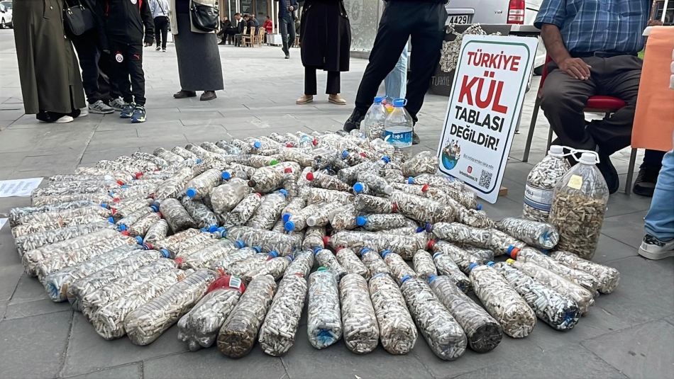 Karaman'da park ve sokakları kirleten 100 bin sigara izmariti sergilendi