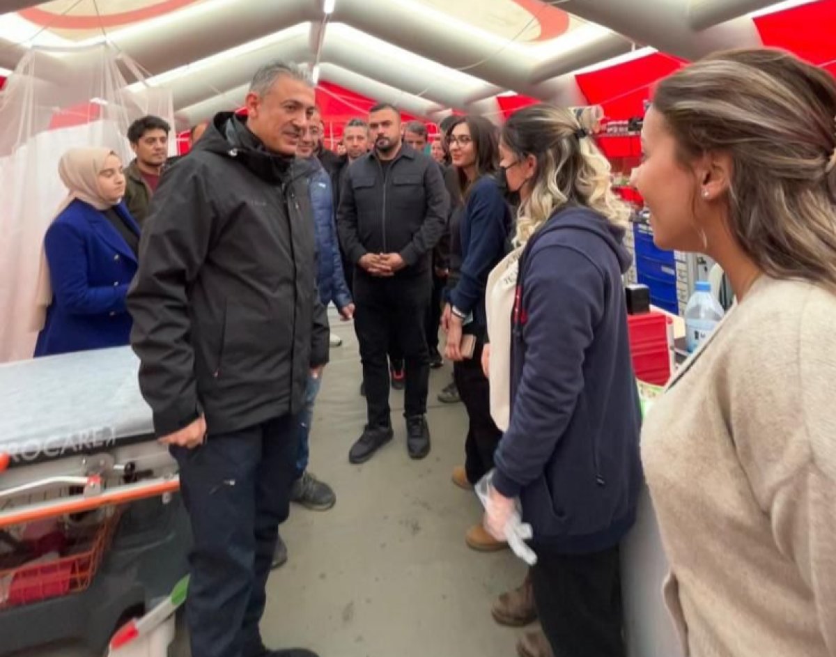 Vali Akkoyun sahra hastanesinde görev yapan doktor ve sağlık çalışanlarının 14 Mart Tıp Bayramını tebrik ederek, hastanede bulunan vatandaşlara geçmiş olsun dileklerinde bulundu.