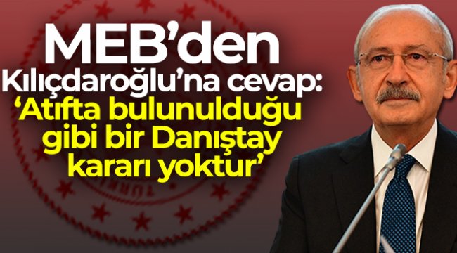 MEB'den Kılıçdaroğlu'na cevap: 'Atıfta bulunulduğu gibi bir Danıştay kararı yoktur'