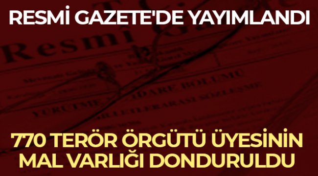 Resmi Gazete'de yayımlandı: 770 terör örgütü üyesinin mal varlığı donduruldu
