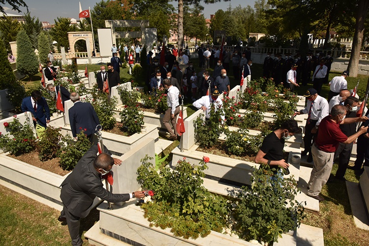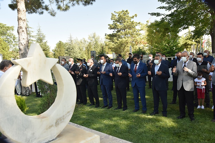 Karaman Asker ve Polis Şehitliğinin ziyareti ile başlayan program saygı duruşu ve İstiklal Marşımızın okunmasıyla başladı. Kur’an-ı Kerim tilaveti ve vatanı için can veren aziz şehitlerimiz için edilen duaların ardından şehitlik ziyareti Vali Işık ve il protokolü tarafından şehitlerimizin mezarlarına karanfil bırakılmasıyla sona erdi.