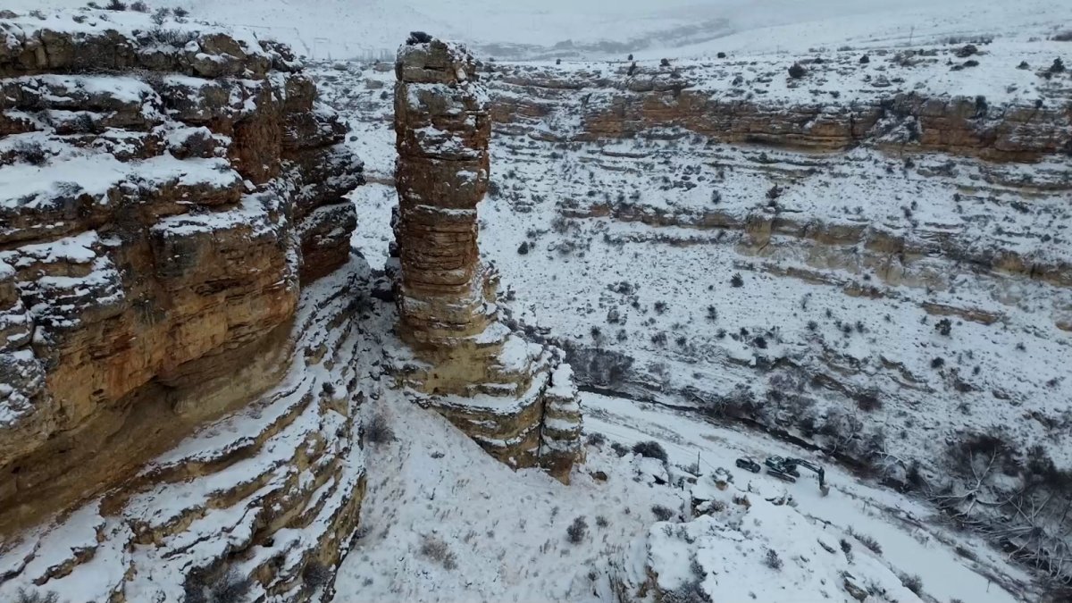 Amerikan kovboy filmlerindeki kanyonları anımsatan yapısıyla bilinen Yeşildere kanyonu ise kar yağışıyla birlikte adeta görsel bir tabloya dönüştü. Kanyonun derin yapısı ve karla kaplanan kayalıkları, farklı açılardan kartpostallık görüntüler oluştururken, ortaya çıkan bu manzaralar havadan dron ile görüntülendi.