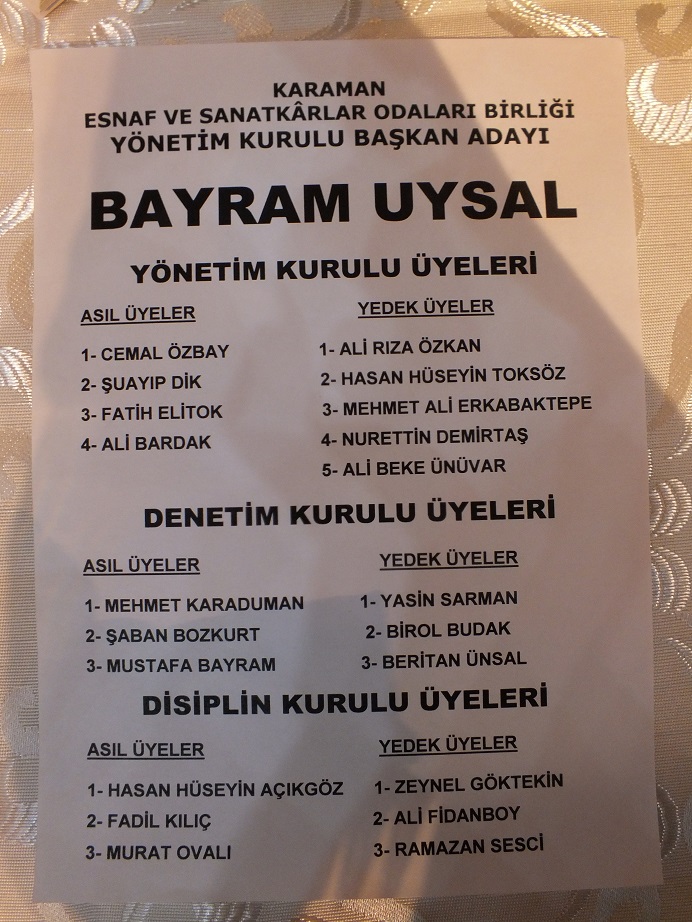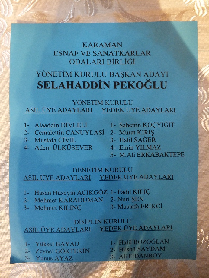 Karaman Esnaf ve Sanatkârlar Odaları Birliği’nin iki liste ile gidilen olağan genel kurulunda yeni başkan Selahaddin Pekoğlu oldu.