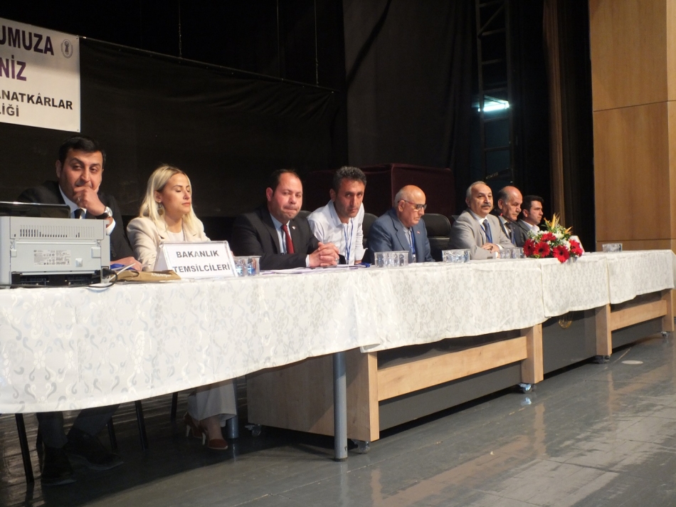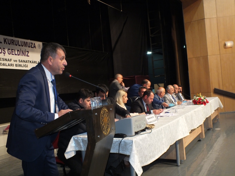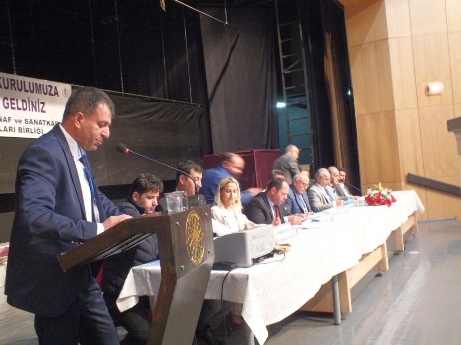 Piri Reis Kültür Merkezi’nde saygı duruşu ve İstiklal Marşı ile başlayan genel kurulda divan heyetinin oluşturulmasının ardından, faaliyet ve çalışma raporları okundu. Daha sonra başkan adayları kürsüye gelerek konuşma yaptı. Ebediyete uğurlanan esnaf ve sanatkârları rahmetle anarak sözlerine başlayan Başkan Pekoğlu, ‘’Sanatkâr demek, toplumun sosyal yapısını halka aksettiren kişi demektir. Sanatkâr demek; halkın inancını, töresini ve kültürünü yaptığı eserlerle ortaya koyan kişi demektir. Sanatkâr demek; döneme uygun estetiği, kadim örf ve adetlerle tecrübesinde biriktirmiş kişi demektir. Velhasıl merhum birlik Başkanımız Ahmet Yenilmez’in de dediği gibi sanatkâr demek, gönlü de sofrası da herkese açık insan demektir’’ dedi.